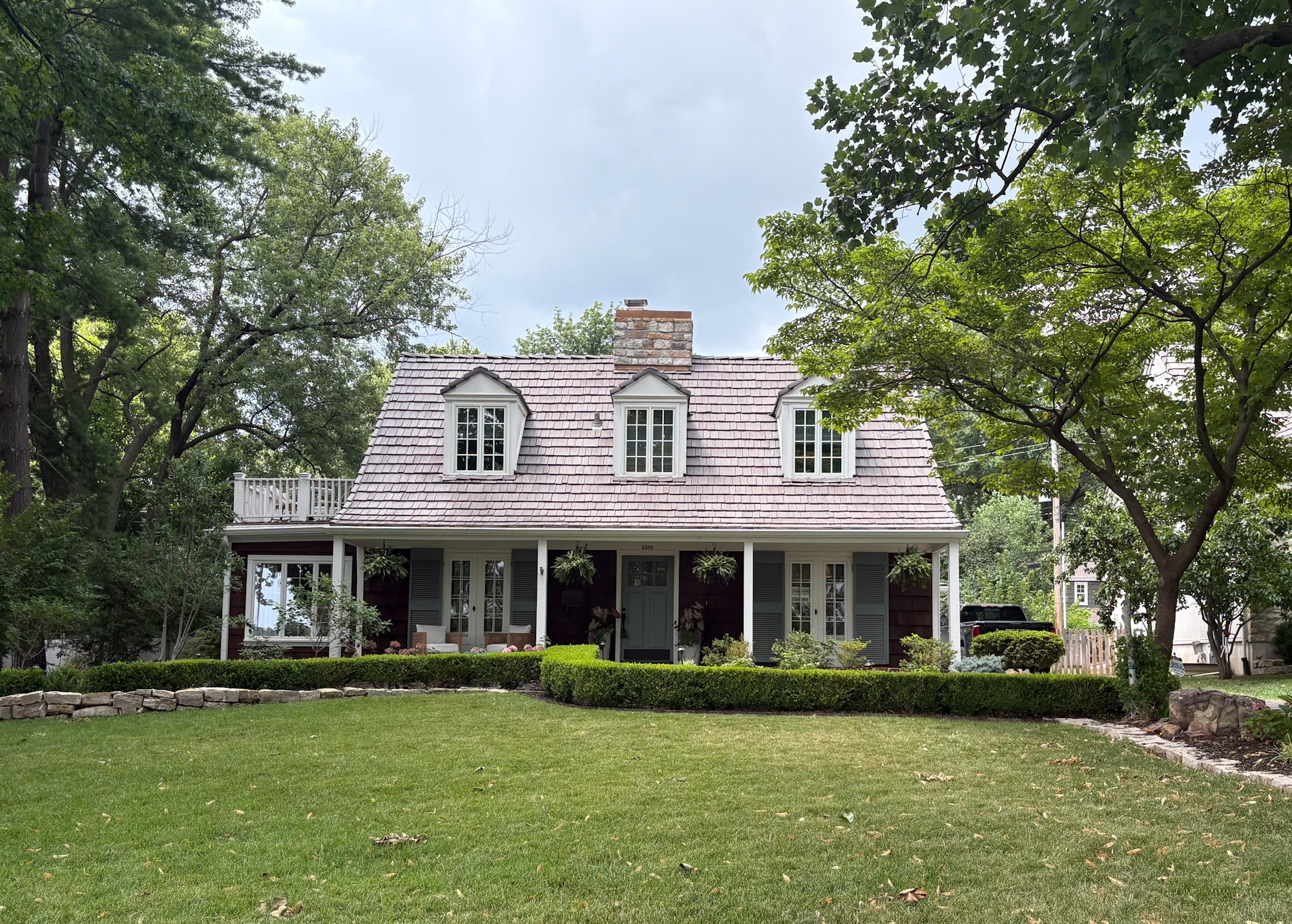 Schloegel Prairie Village exterior project, more details here. This home combines Cape Cod features with some elements of colonial revivals.