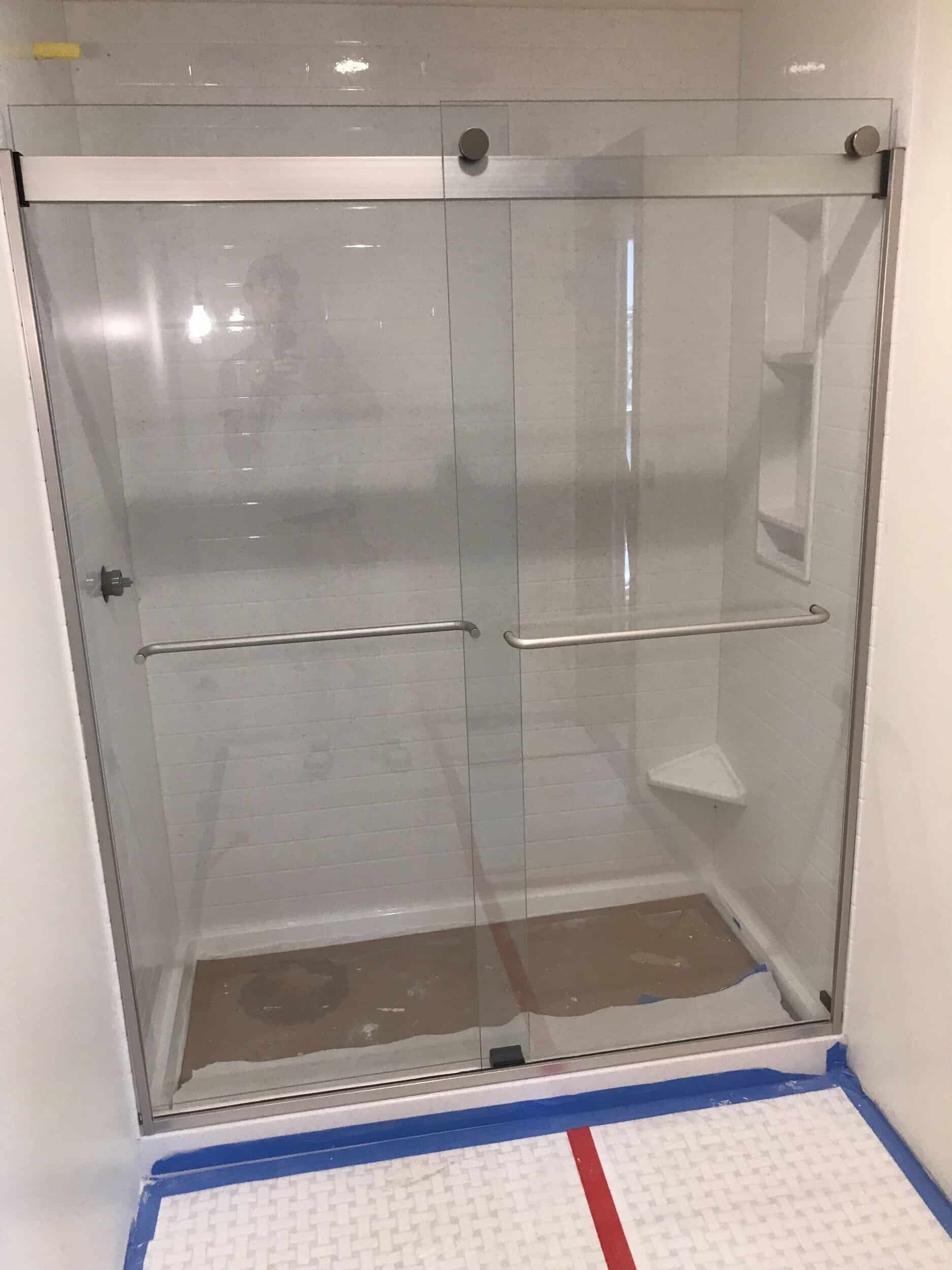 As always, our process began by protecting the floors and surrounding areas that would remain untouched throughout the remodel. Next came the demolition of the existing bathroom spaces. For the primary bathroom, demo involved ripping out the existing tub, shower, vanity, and floors.