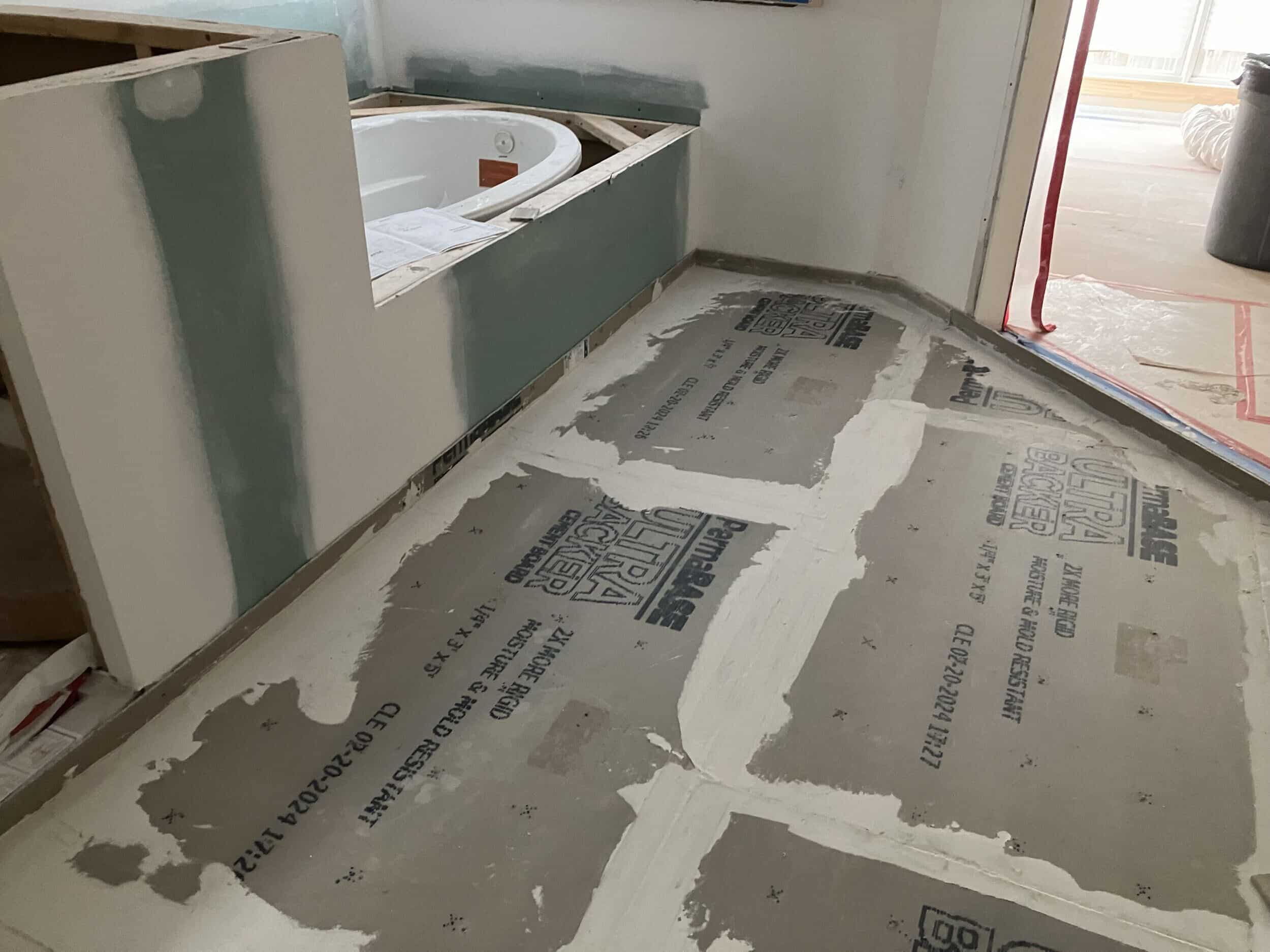Next up we did some drywall and insulation work. We also prepped the floors so tile could be laid.