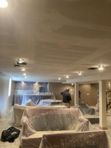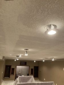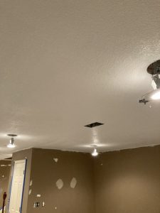 While the original plan involved only fixing the water-damaged areas, we convinced our clients the popcorn ceilings needed to go.
