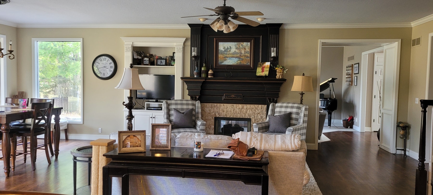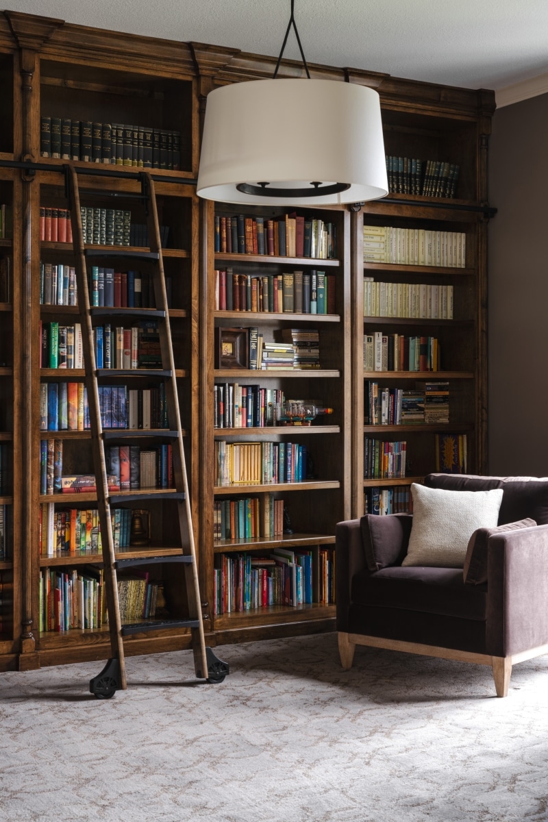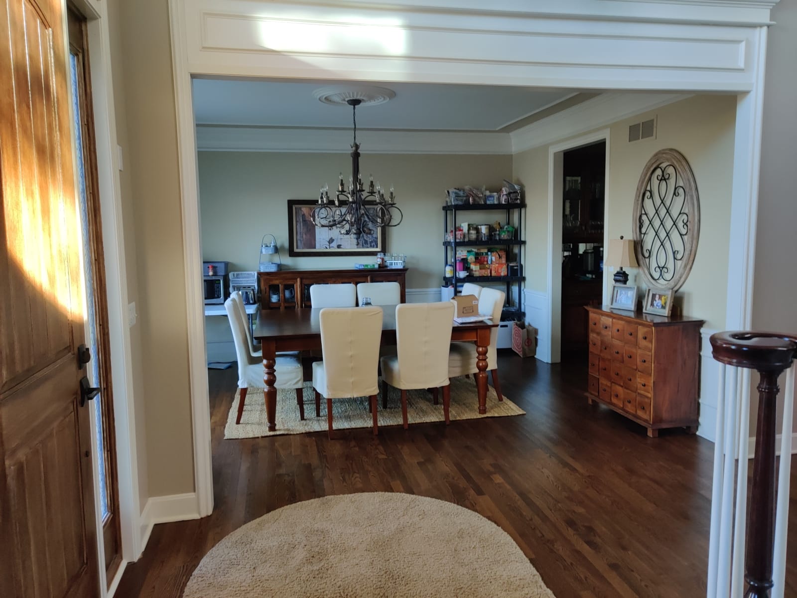 This remodel spanned the family room, living room, dining room, powder room, and library. While the room layouts stayed the same, we focused on thoughtful updates to flooring, ceilings, lighting, and staircases. Soft whites and stained wood created a consistent, cohesive aesthetic throughout the main floor. By the end, every surface had been refreshed, from the fireplaces to the two staircases. Our clients are thrilled with their transformed space and love the cozy, inviting design.