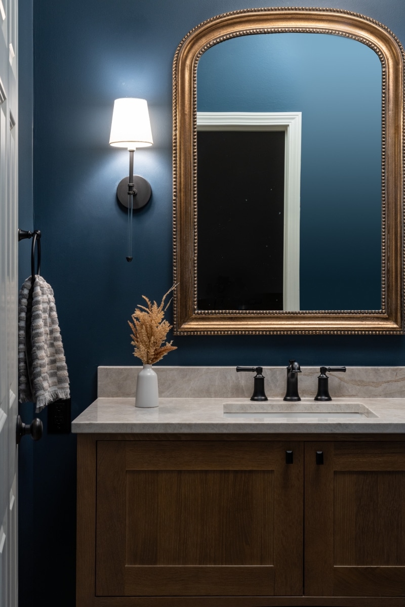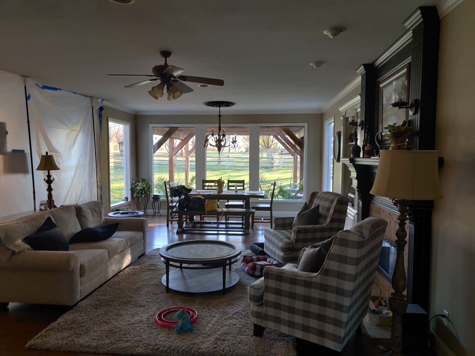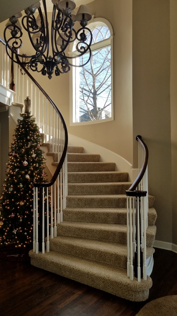 This remodel spanned the family room, living room, dining room, powder room, and library. While the room layouts stayed the same, we focused on thoughtful updates to flooring, ceilings, lighting, and staircases. Soft whites and stained wood created a consistent, cohesive aesthetic throughout the main floor. By the end, every surface had been refreshed, from the fireplaces to the two staircases. Our clients are thrilled with their transformed space and love the cozy, inviting design.