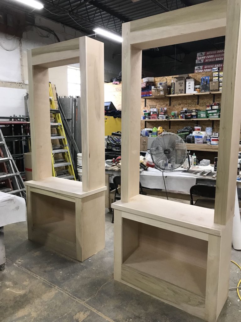 These clients wanted to add some much needed storage and style to their living area. A set of bookcases sounded like the perfect solution. They wanted something more custom for their space than what was available in box stores. Our Handyman Services team came in to the space, measured, and took notes on the existing finishes and trim to come up with a design. Once a plan was made, they set to work constructing a pair of book cases with lower cabinets in our very own shop.