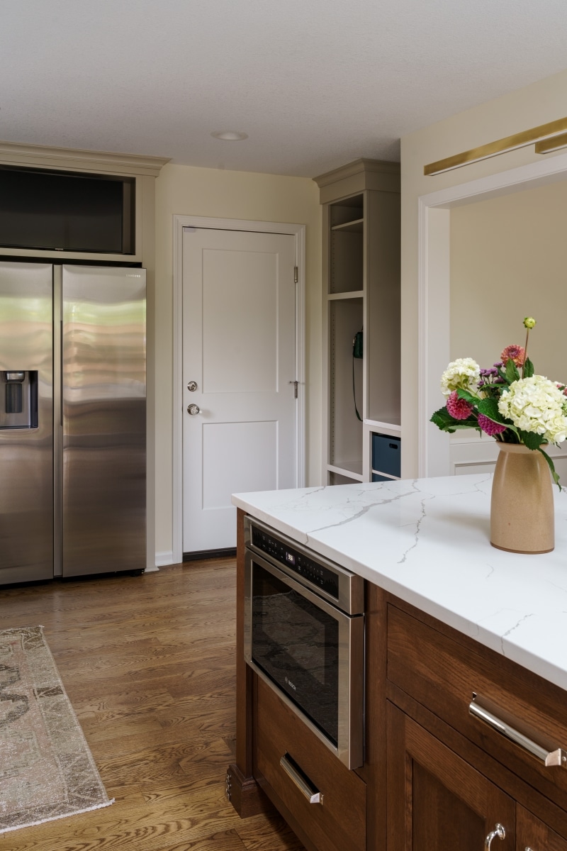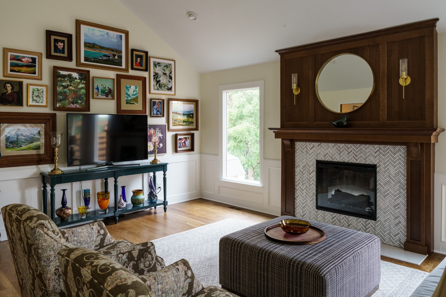 This stunning kitchen transformation in Olathe was all about aligning the space with our clients' lifestyle. We reconfigured the layout to create a more natural flow, enhancing both functionality and connection. Just steps away, a beautiful new fireplace in the adjacent living space adds warmth and character, making this whole area the true heart of their home.