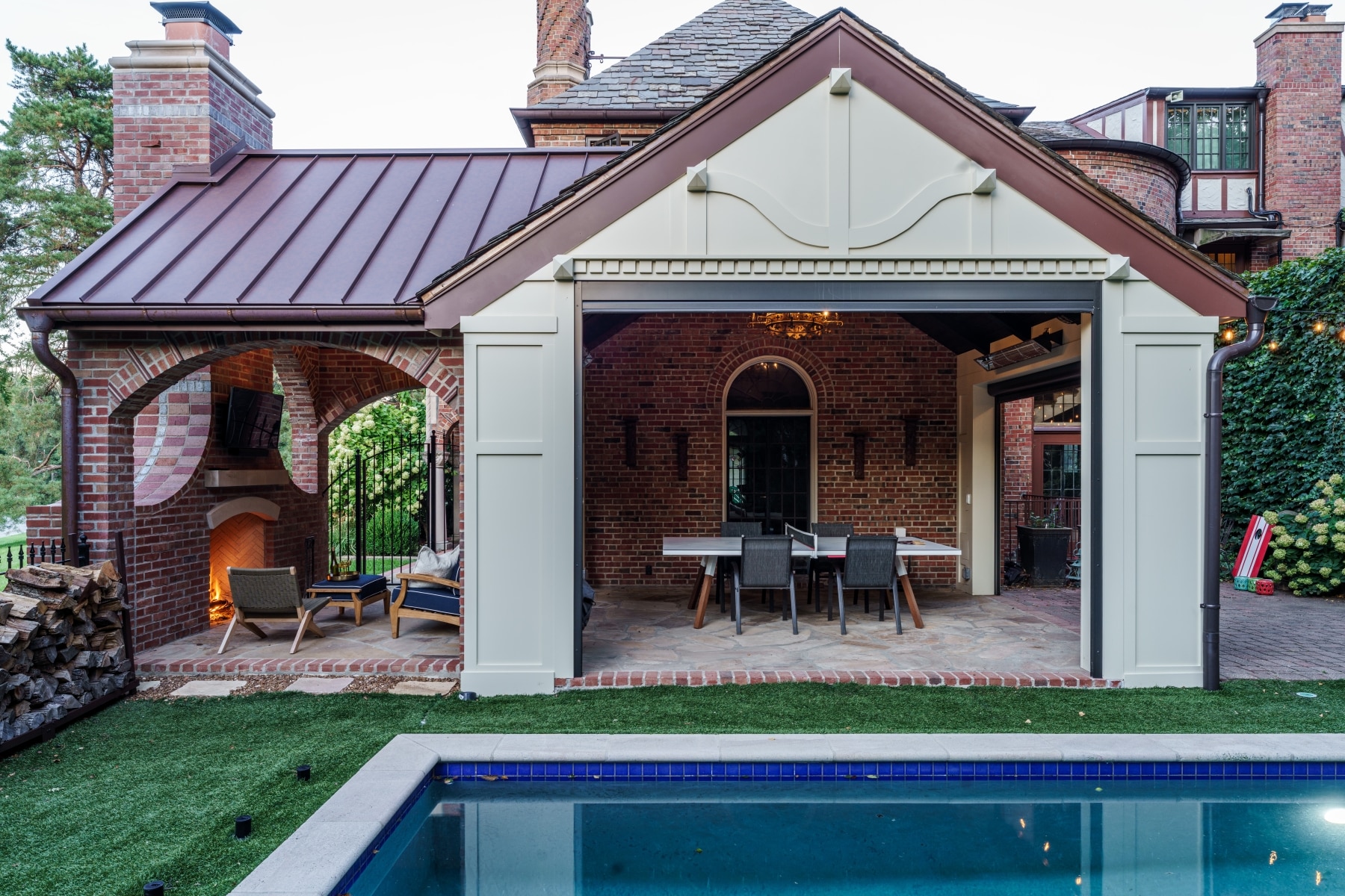 Working closely with designers Donna Kirsopp and Kenny Choikhit, our clients envisioned an outdoor living space that would feel like a true extension of their home. By carefully matching the existing brickwork and architectural details, the covered porch addition blends seamlessly with the original structure. Thoughtful design elements—including the arched openings, fireplace, and refined finishes—create a cohesive, inviting space that reflects the home’s character while expanding how it’s lived in and enjoyed year-round.