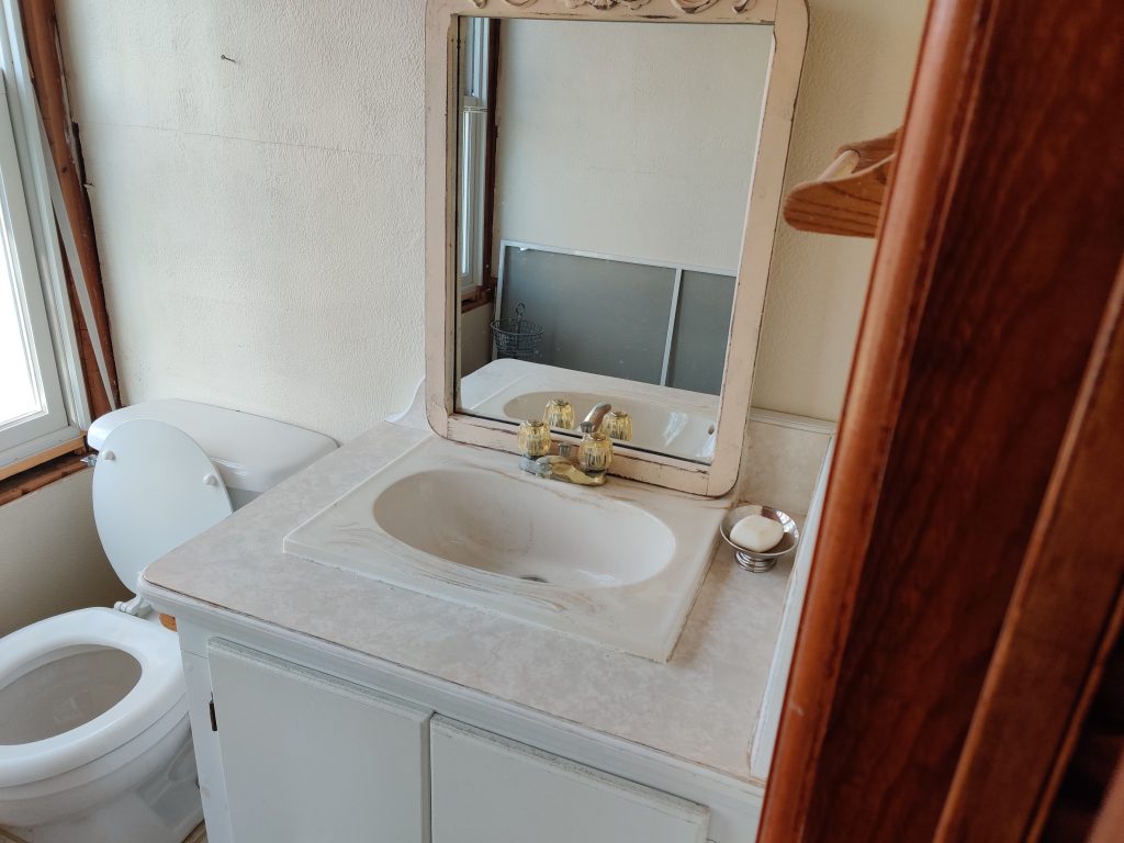 On the opposite side was a powder bath that was long overdue for an upgrade. The home only had one full bathroom, and with its outdated fixtures and finishes, it wasn’t ideal.