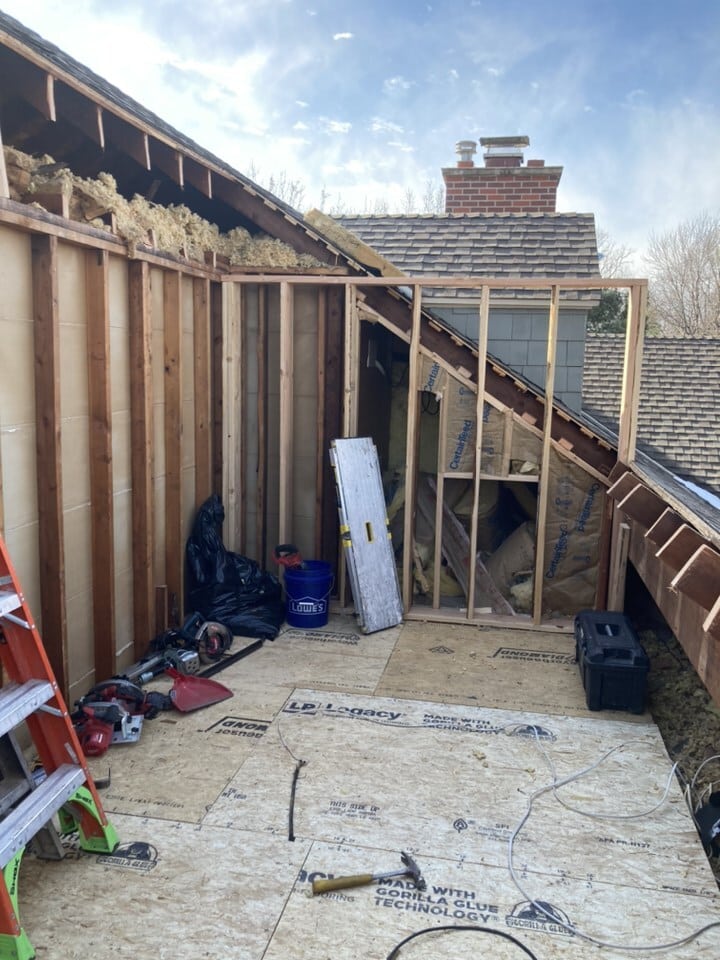 To start, we removed an existing section of the roof. This would allow for the dormer and headroom for the new office space.