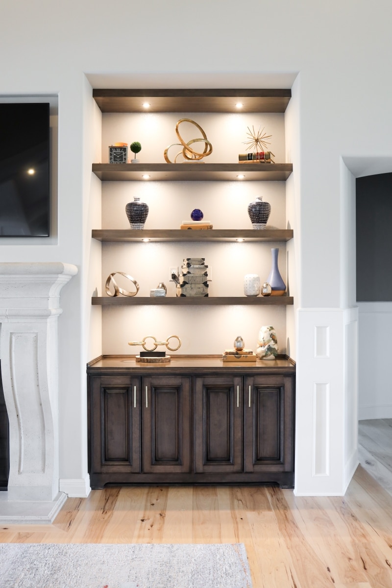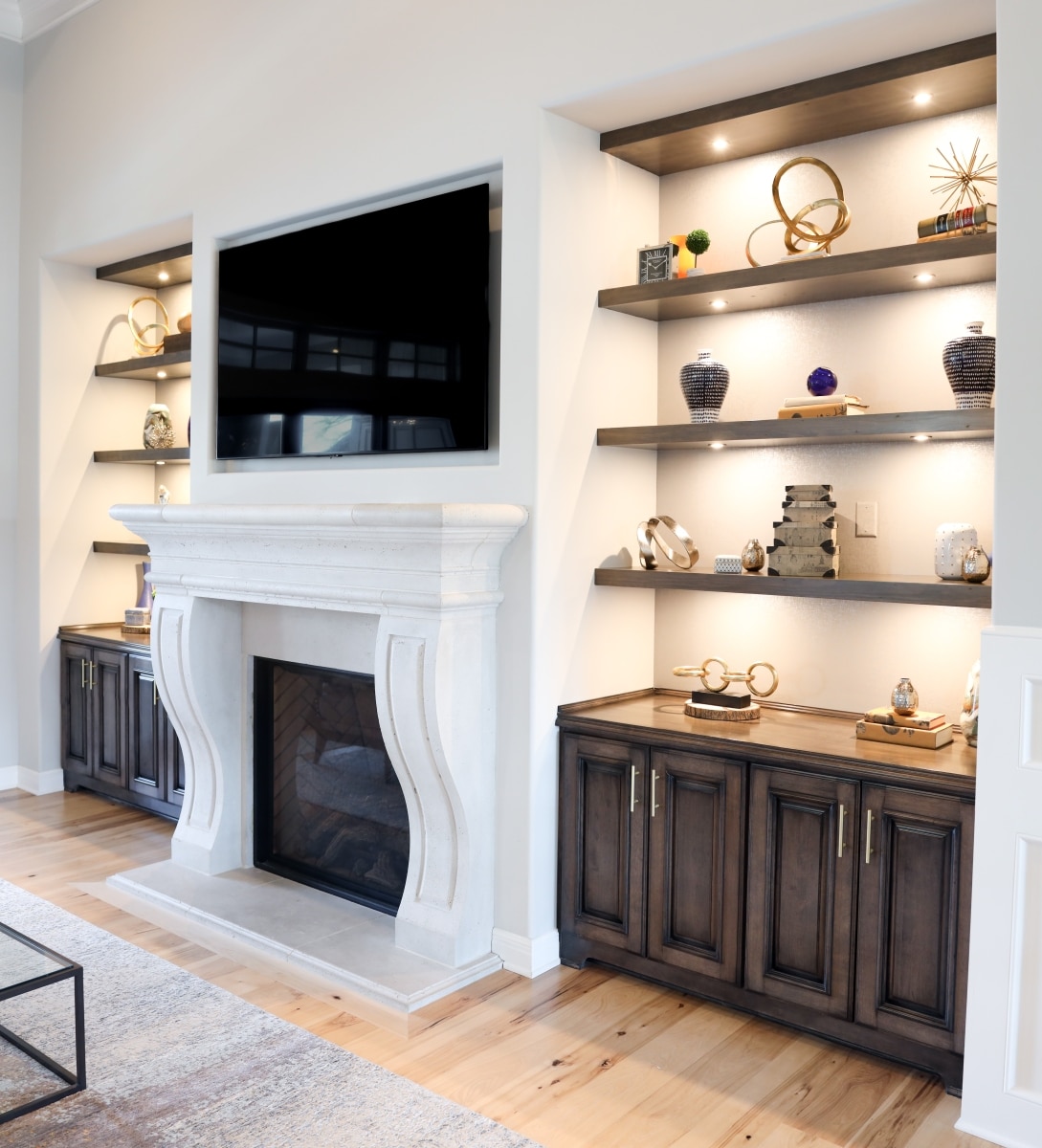In Olathe, Kansas, Schloegel Design Remodel's Handyman Services enhanced a living space by installing custom shelving and recessing the television. This project achieved a more balanced and organized room layout, seamlessly integrating entertainment components with tailored storage solutions. Learn more about this project on our blog post "Handyman Services Creates Custom Shelving for a Balanced Living Space."