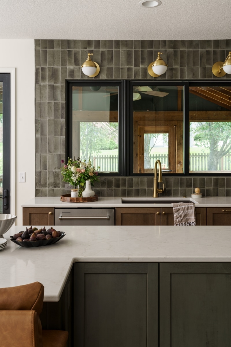 Nina Schmidt worked closely with our clients to design a moody, open-concept kitchen tailored to the way their family cooks, gathers, and entertains. Warm, earthy deep tones paired with rich gold accents bring depth and sophistication while still feeling inviting and family-friendly.
